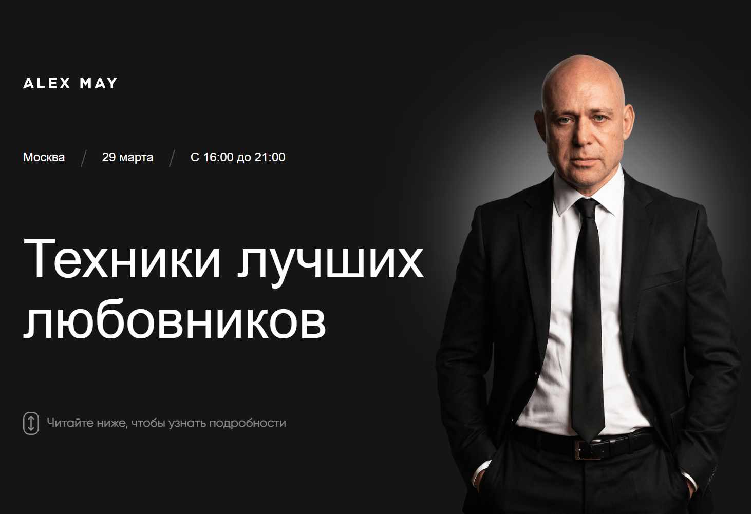 Семинар о том, как сделать так, чтобы ещё ДО секса женщина невероятно кайфовала и буквально хотела вас изнасиловать + как доставлять ей невероятное наслаждение в общественных местах, совершенно для этого не предназначенных (например, в кафе, самолёте или на улице).